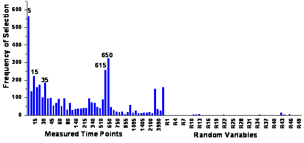 figure 67:  Ranking of the variables for 50 time points and for 50 additional random variables.