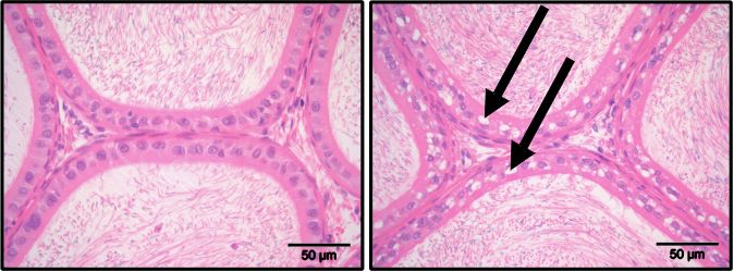 Detection of phospholipidosis by the use of trans electron microscopy. Clean tissue (left side) versus affected tissue (right side). Images by B. Lenz.